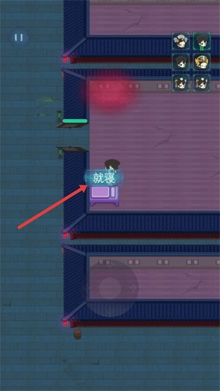 3、找到床铺后,点击【就寝】准备进行防护。