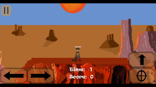 2、牛仔从天而降的入侵没有尽头,外星人会源源不断地发起进攻,你得坚守在沙漠中,将所有入侵者都消灭掉。