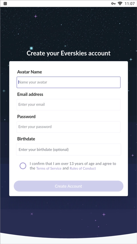 1、打开Everskies,即永远的天空: 虚拟装扮,游戏需加速器启动,首先点击“@ Use email”注册账号;