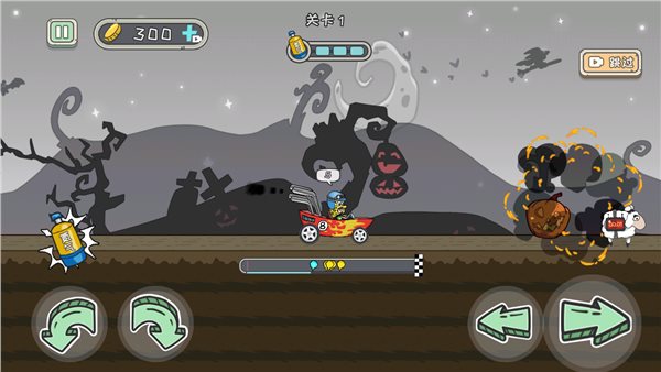 1玩家需要操控一辆飞车在风格多样的卡通地图中挑战各种奇特的山坡地形,不同场景下的地形设计充满变化,从蜿蜒的山道到造型独特的坡面,都需要精准控制飞车的动力和角度来完成攀爬任务。