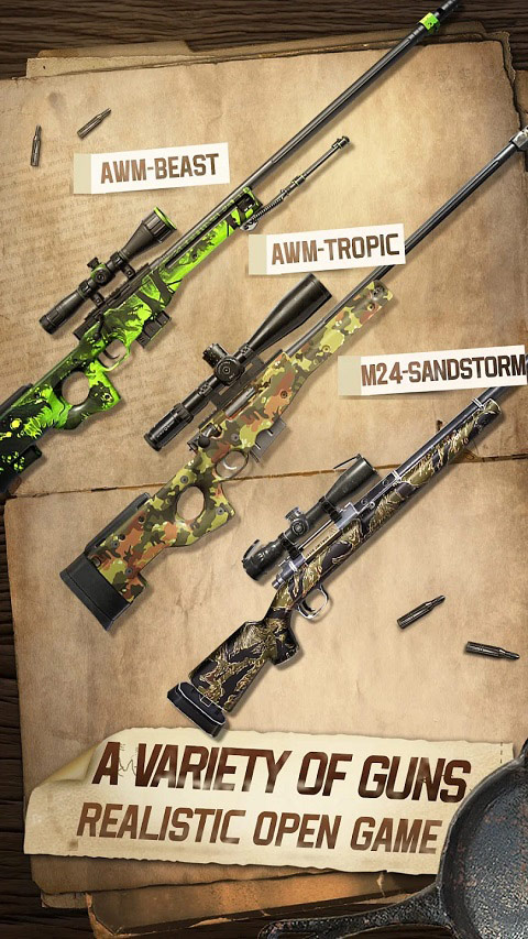 3. 多样的装备选项:玩家能够解锁并强化各类狙击步枪与战术装备,以此提升狩猎的效率以及自身的生存能力。