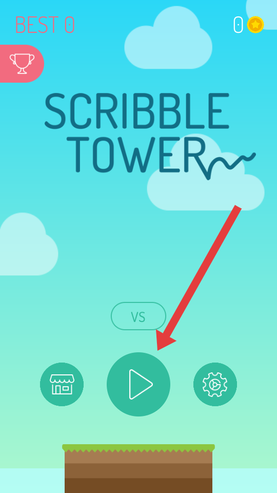1、打开游戏进入主界面后,点击中间那个绿色的播放按钮,即可开启涂鸦塔搭建挑战,接下来需要操控方块进行堆叠操作。