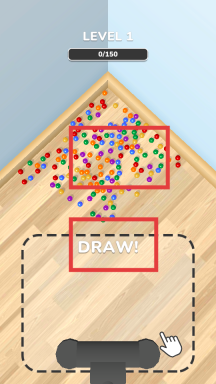 3、绘制合适的扫把头,用手指点击并移动扫把,经过有彩球的地方,把小球扫进指定区域,等进度条填满就能进入下一关。
