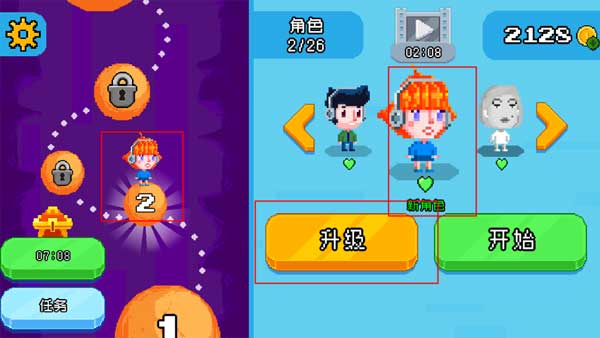 6、接下来就可以开启新的挑战啦,玩家既可以挑选新角色来完成关卡通关,也能够对角色属性进行升级哦。