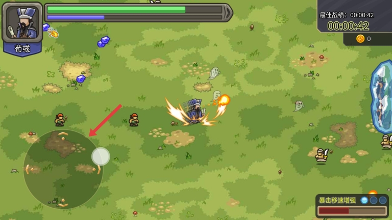 2可以借助左侧的操纵杆调整角色的移动轨迹,巧妙变换位置来避开对手的进攻,同时主动接近蓝色的晶体状物品,获取后能提升自身的各项属性,让技能效果得到增强。