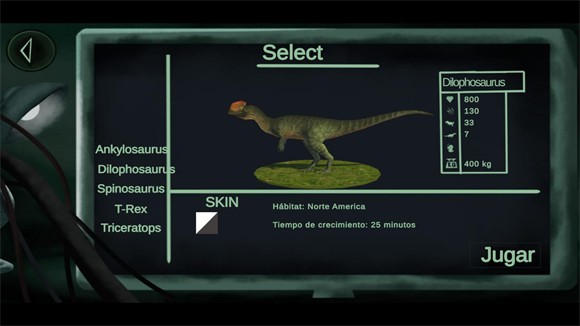 2、点击play后能够挑选不同的恐龙,共有五种不同的恐龙可供选择。