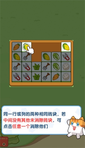 3、同一行或列中存在两个相同物品时,只要它们之间没有其他尚未消除的物品,点击其中任意一个即可将这两个物品消除。