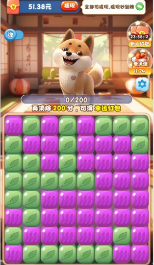 2、每次消除都会根据方块的数量来累计一定的积分,达成目标积分即可获得红包。