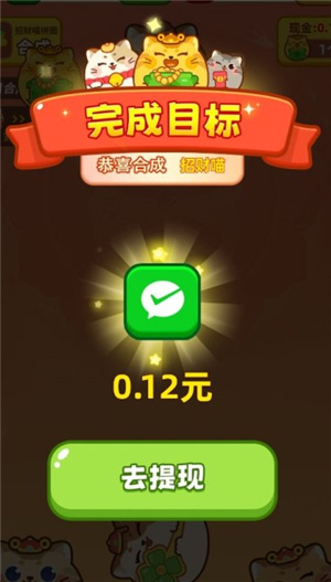 2、合成第一个招财猫就能提现红包,直接秒到账,合成第二个招财猫也是如此。
