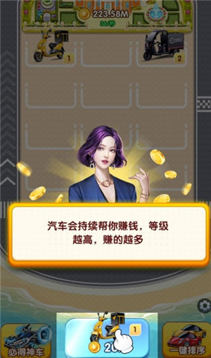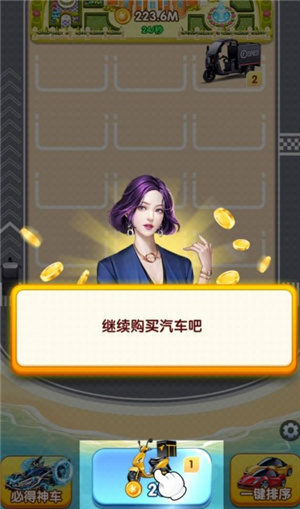 3、只需点击一键排序功能,所有车辆就能自动排列整齐,后续进行合成操作会更加轻松便捷。
