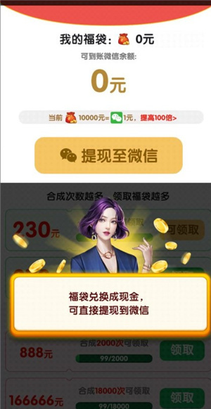 6、完成一定次数的合成操作后就能领取福袋,合成次数会持续刷新,福袋可无限次领取。