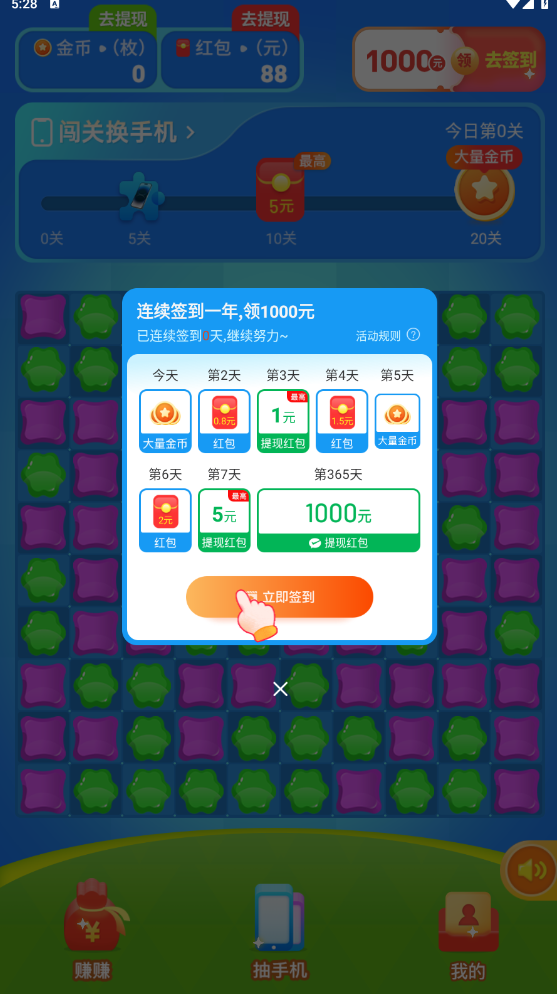 真的可以,登录游戏之后可以先领一个88的新人红包,接着通过闯关、每日签到,或者是完成任务的形式来积累红包和金币奖励,然后通过一定的比例就能够兑换到微信中了。