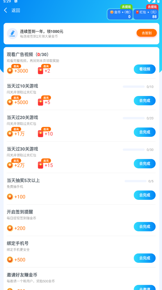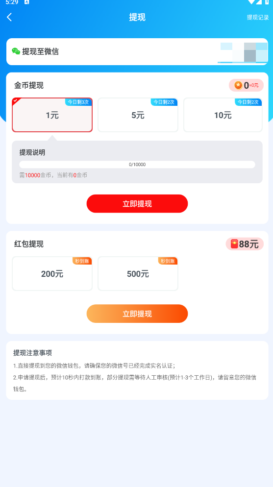 5、金币和红包都是需要达成一定的门槛才能进行兑换。