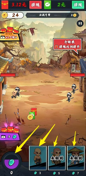 这是一款相当有趣的休闲放置类塔防游戏,玩家需要持续召唤本门派的众多弟子参与战斗,只要成功击败敌对门派,就能顺利通关并领取红包奖励。