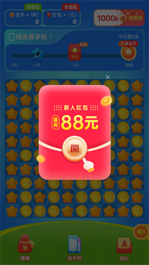 首先新人签到后就能领取红包,要是连续签到三天,可以直接到账0.3,并且闯关后也能领取对应红包。