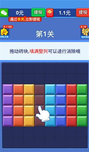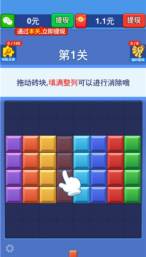 方块多多总能为玩家带来绝佳的方块消除体验,只需灵活拖动方块,填满整行或整列即可完成消除,操作十分轻松,还能获得丰厚红包,达到一定金额就能直接到账,没有其他限制条件。