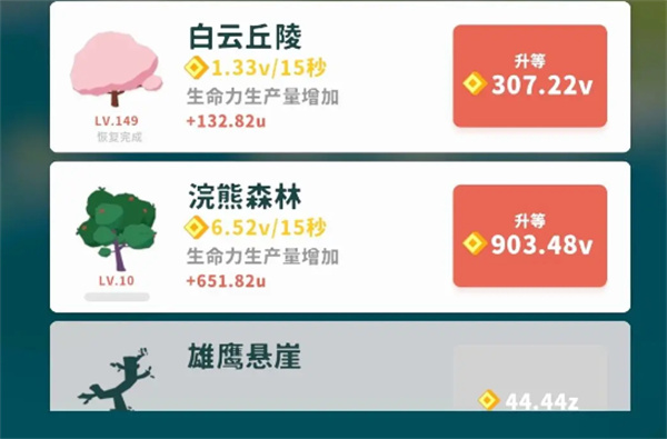 2、通过升级获取更多金币来解锁小岛,金币的单位对应26个英文字母,且按字母顺序越往后价格越高,换算规则为1000a等于1b,1000b等于1c。