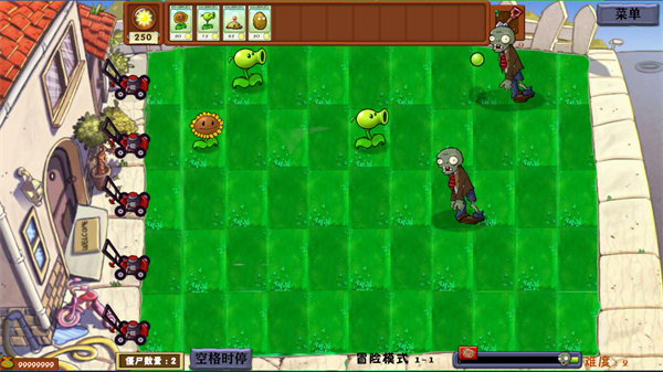 5、可以种植豌豆射手、坚果之类的植物,如此便能迅速消灭僵尸。