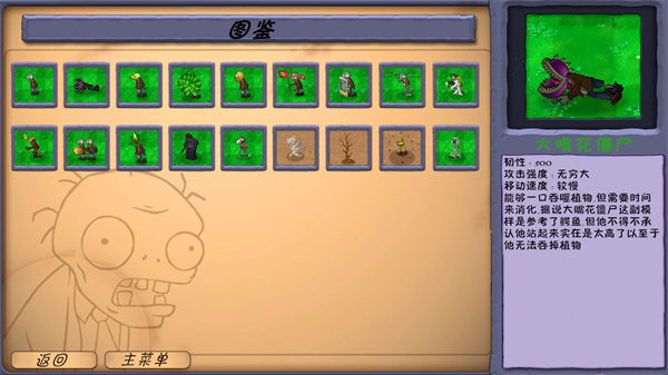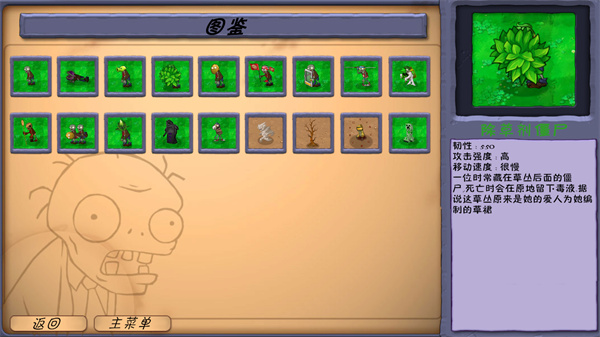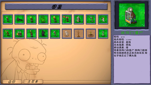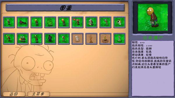 3、还能查看图鉴,了解植物以及僵尸的属性。