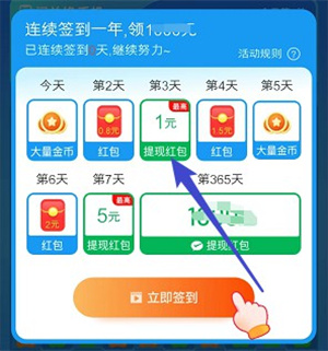 可以提现的,新人上线就能直接提一次,大概有0.3,后面还能提现2次,每次大概有0.2,另外就是签到3天也能拿一个小红包。