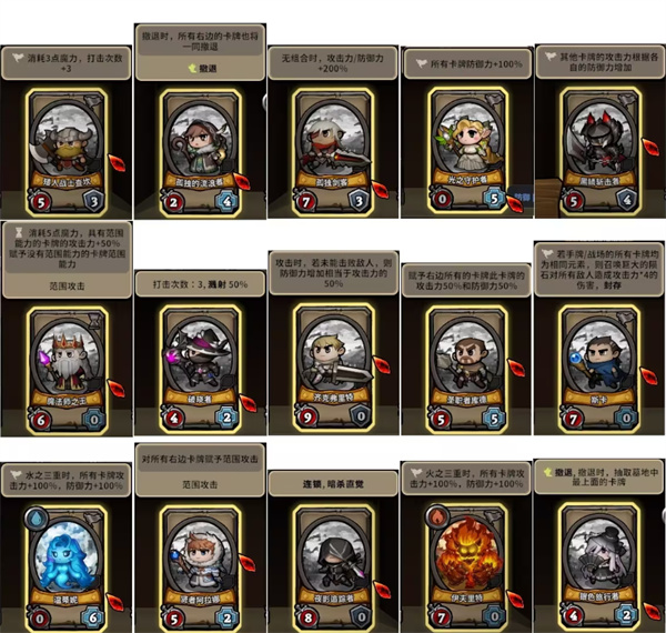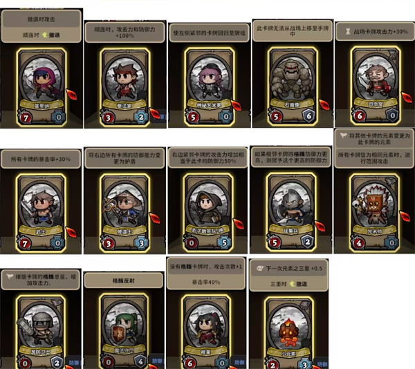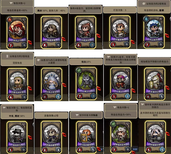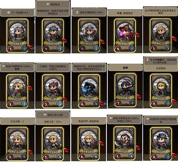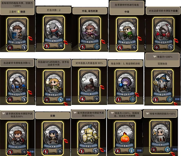 这个卡牌一共有5个等级,从低到高分别是:普卡,银卡,金卡,紫卡及橙卡,并且普卡只会出现在基础牌组里,而橙卡则只会出现在地图的召唤阵里面。卡牌都能升级的,要是升级了还能得到一个装备格子,同时一些卡牌升级其本身的效果也会提升。