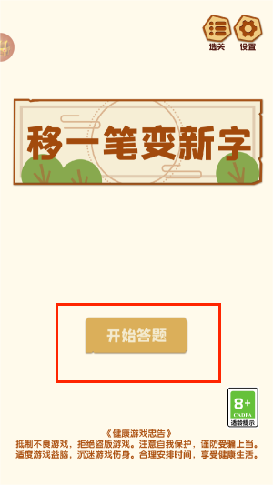 1运行应用后,在主界面找到并点击“开始答题”按钮,系统会自动呈现第一道字形变换相关的题目。