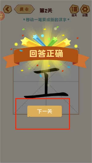 2在一些难度较高的关卡中,需要对同一个汉字进行不同笔画的调整,从而产生多种符合要求的解答方式,以此来增加玩家的探索空间。