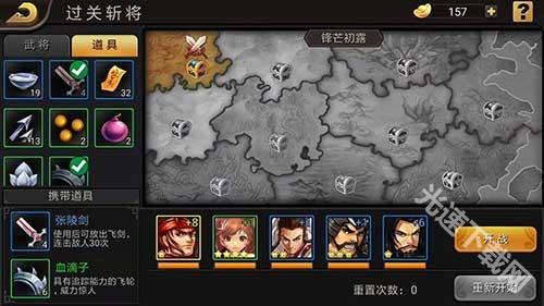 3、充分利用道具,游戏初期道具除了可以卖钱获得少量的金币外,在过关斩将中可以将其主要作用发扬光大。用道具发起攻击可以很好的避免自己武将损血,而且击中后基本都可以接连击,给敌方造成巨大的伤害。