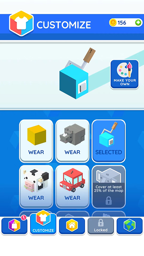 8、在【CUSTOMIZE】界面,可进行选择不同的方块皮肤,