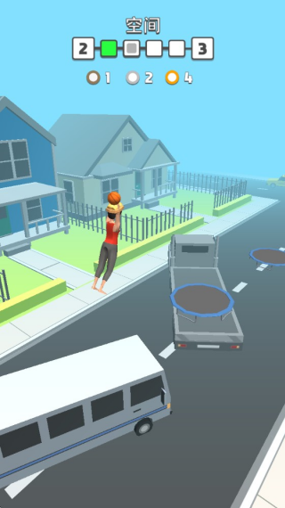 3、每局游戏的时长很短,一般在一两分钟内就能结束。特别适合在等车、休息这类碎片化时间里快速玩上一局,轻松释放压力。1、开始挑战后,点击屏幕就能起跳,接着按住屏幕便能在空中翻转。