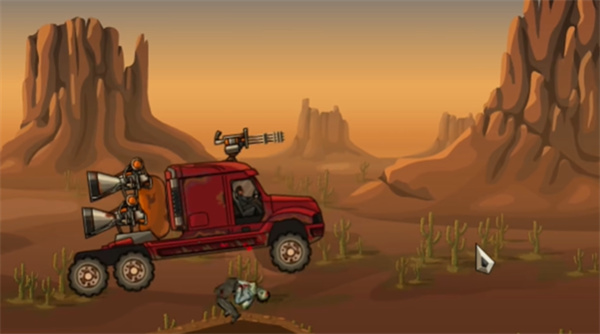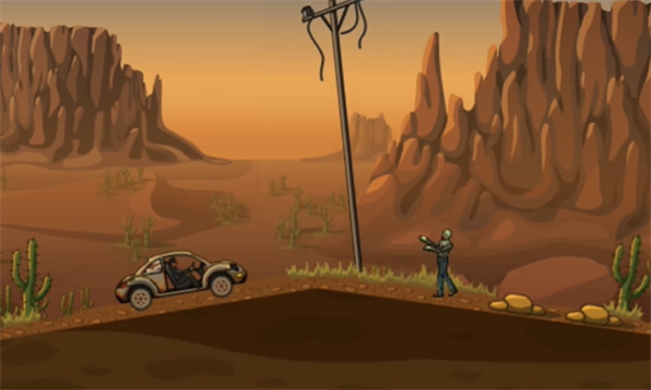 《战车撞僵尸》,英文名为Earn to Die,是该系列的首部作品。游戏中,玩家需操控一辆经过改装的战车,在遍布僵尸的道路上持续行进,千万不能停下——一旦停滞就会被僵尸围攻吞噬。别忘了利用车上配备的武器,通过不断扫射,把所有挡路的僵尸都消灭掉。