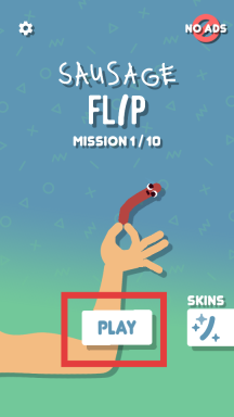 1、点击PLAY进入关卡,找准合适的时机用手指进行操作,让香肠依靠弹力完成翻转跳跃的动作,沿着既定的路径不断前进。