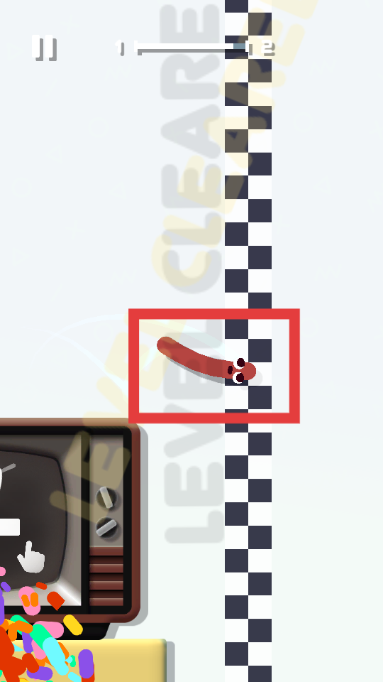 2、注意观察界面上方的进度条,操控香肠躲避各种障碍,利用场景中的道具,不断朝着终点前进。