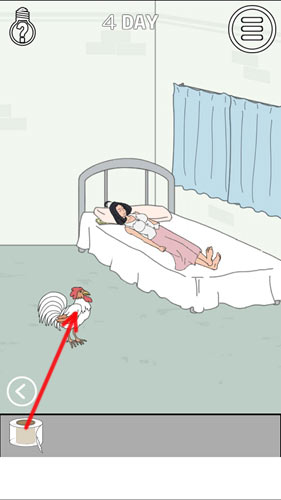 4、第四天:从抽屉里拿出胶带 → 交给公鸡 → 拔下鸡毛挠老婆的脚 → 获得钱
