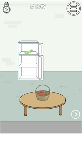 5第五天的流程是:从冰箱中取出未成熟的绿色香蕉,将其放置在果篮内等待自然成熟变黄,之后把成熟的香蕉递给猩猩,最后获取相应的报酬。