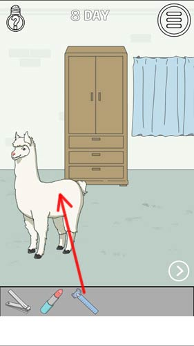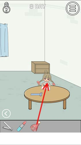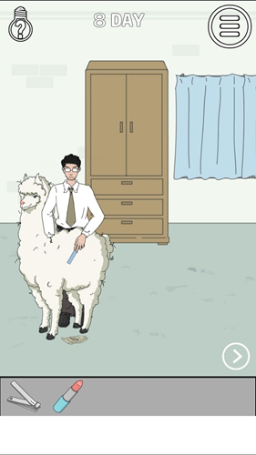 8第八天的安排是:先抚摸羊驼三次获取肉类,将肉类交给女儿后得到一把尺子,再把尺子送给羊驼,最终获得钱币。