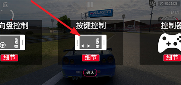 游戏具备多种操控方式,像方向盘操控、按键操控等,在当前场景下可采用按键操控。