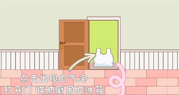 结束时会弹出“咚咚咚”的气泡提示,点击这个气泡后打开门,把冰箱里的食物收纳好,这样才算成功!