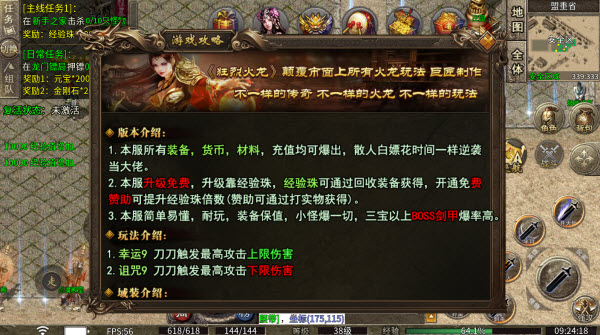 3、本服规则简单易懂,玩法耐玩度高,装备保值性强,小怪有概率爆出终极装备,三宝及以上级别的BOSS掉落剑甲的概率较高。