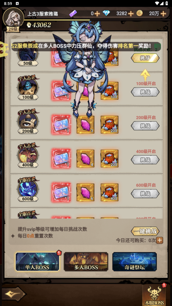 2、世界BOSS挑战:获得稀有奖励和成就。