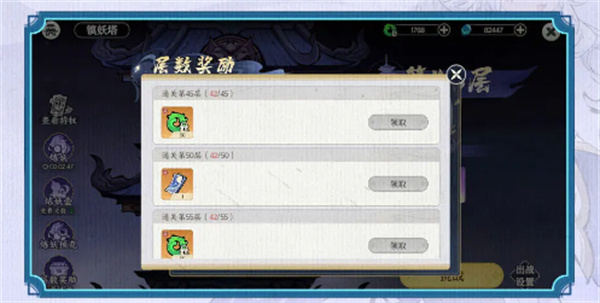 4、还能参与镇妖塔,只要成功通关220层,就能获取22张契灵符和1100仙玉。