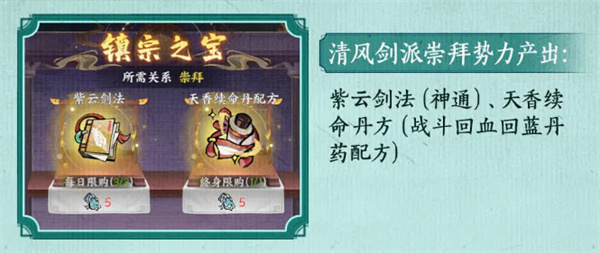 1、清风剑派:能够获取紫云剑法,还有天香续命丹的丹方。