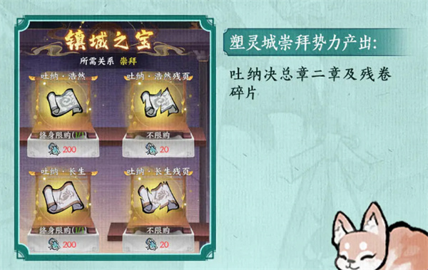 3、塑灵城:得到吐纳浩然、吐纳产生等秘卷。