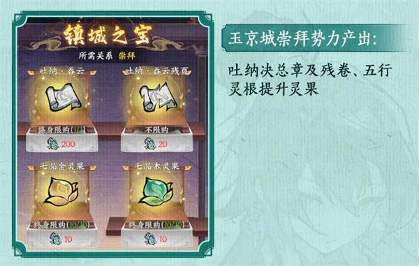 4、玉京城:在这里同样能够获取吐纳吞云、七品金灵果之类的物品。