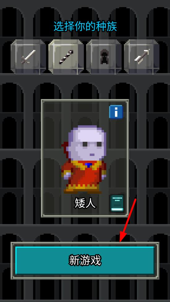 1进入游戏后,挑选初始角色和基础装备,踏入第一个地牢场景,操控角色移动探索,和遇到的怪物战斗,开启趣味冒险。