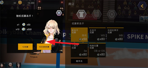 4、获取到足够多的排球数量后,就能不受限制地多次进行招募尝试。