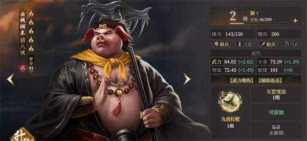 能和孙悟空协同作战,同时施展法术“天罡变法”,使队伍获得连击效果。