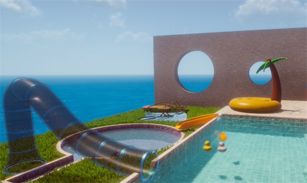 3、而且还能顺着管道到达对面的泳池,开启一段全新的冒险。
