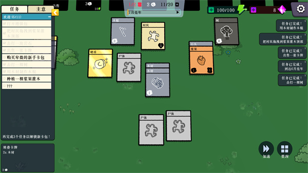 2、可以获得很多的卡牌,比如村民、木材、岩石等。