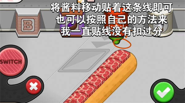 5、放置食物时,若食物出现发亮情况,说明距离过近,这会造成扣分。此时需将发亮的食物向下移动,但移动幅度不宜过大,在确保食物不再发亮的同时,还要注意让所有食物保持均匀的间距。